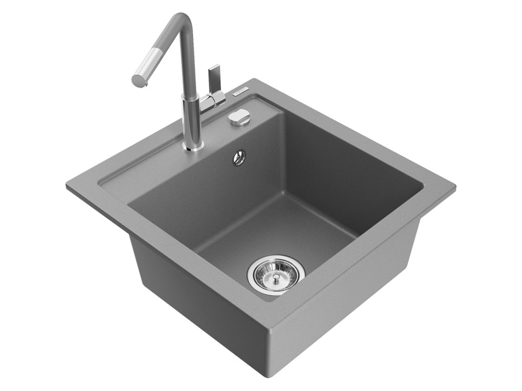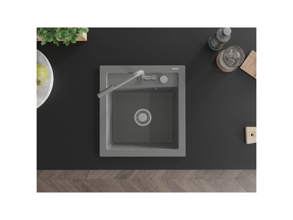 Granitový drez Mexen Vito s 1 misou a kuchynskou batériou Flora, sivý - 6503-71-670401-06