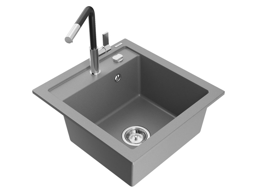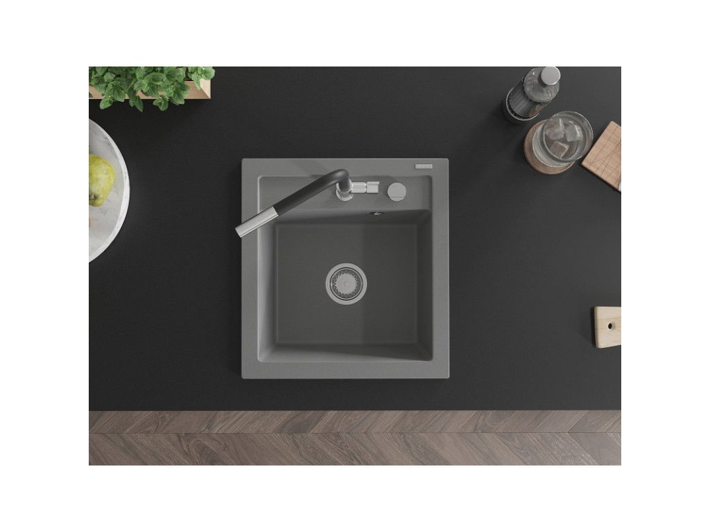 Granitový drez Mexen Vito s 1 misou a kuchynskou batériou Flora, sivý - 6503-71-670401-07