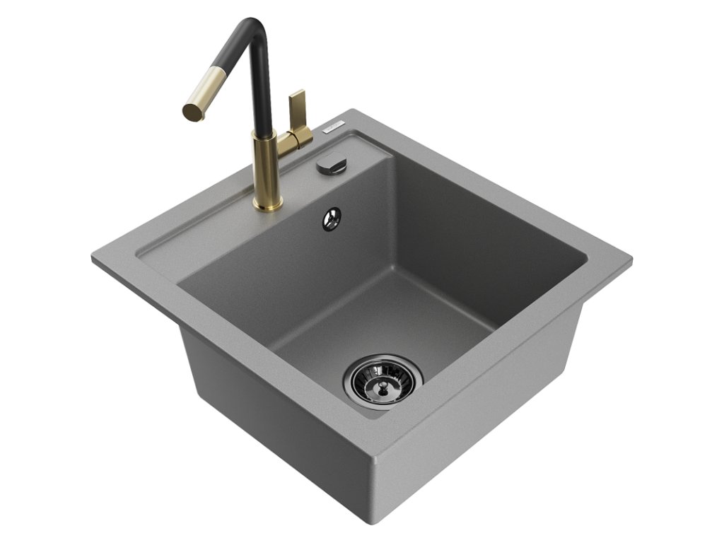 Granitový drez Mexen Vito s 1 misou a kuchynskou batériou Flora, sivý - 6503-71-670401-57-B