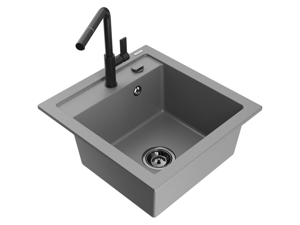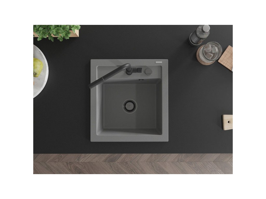 Granitový drez Mexen Vito s 1 misou a kuchynskou batériou Flora, sivý - 6503-71-670401-70-B