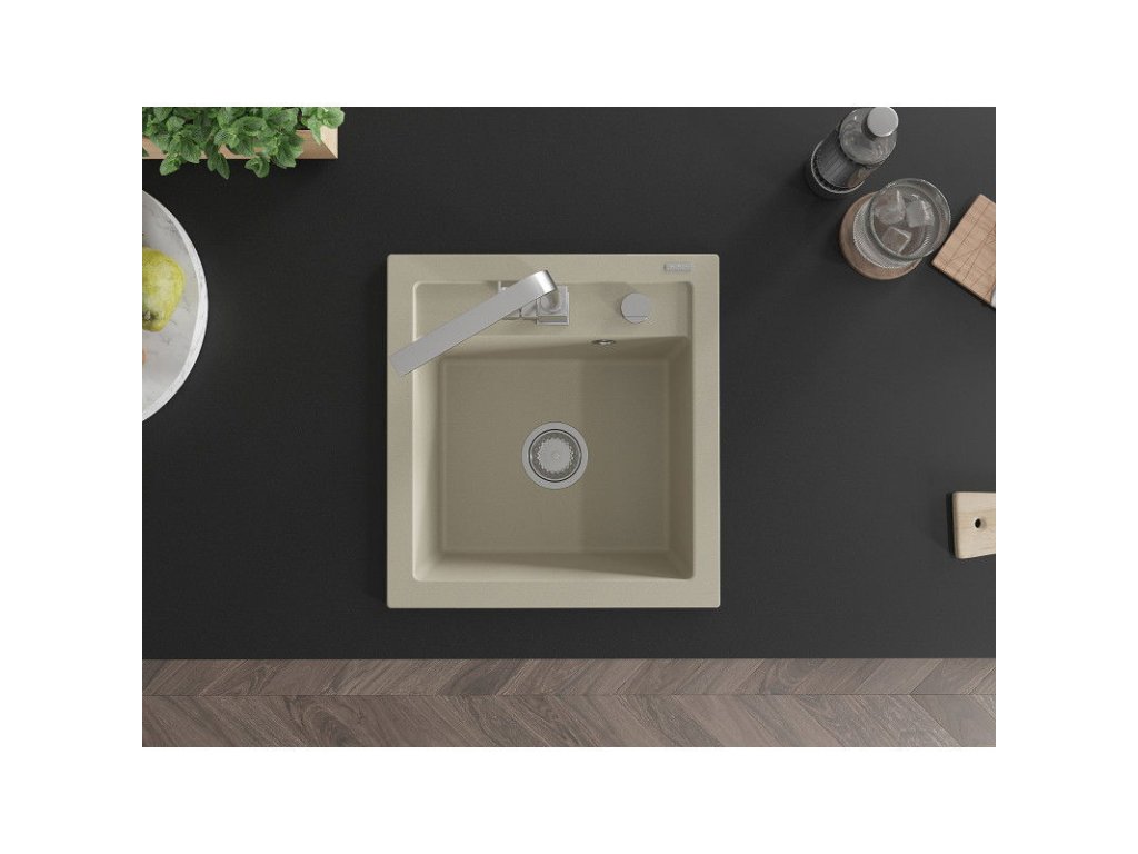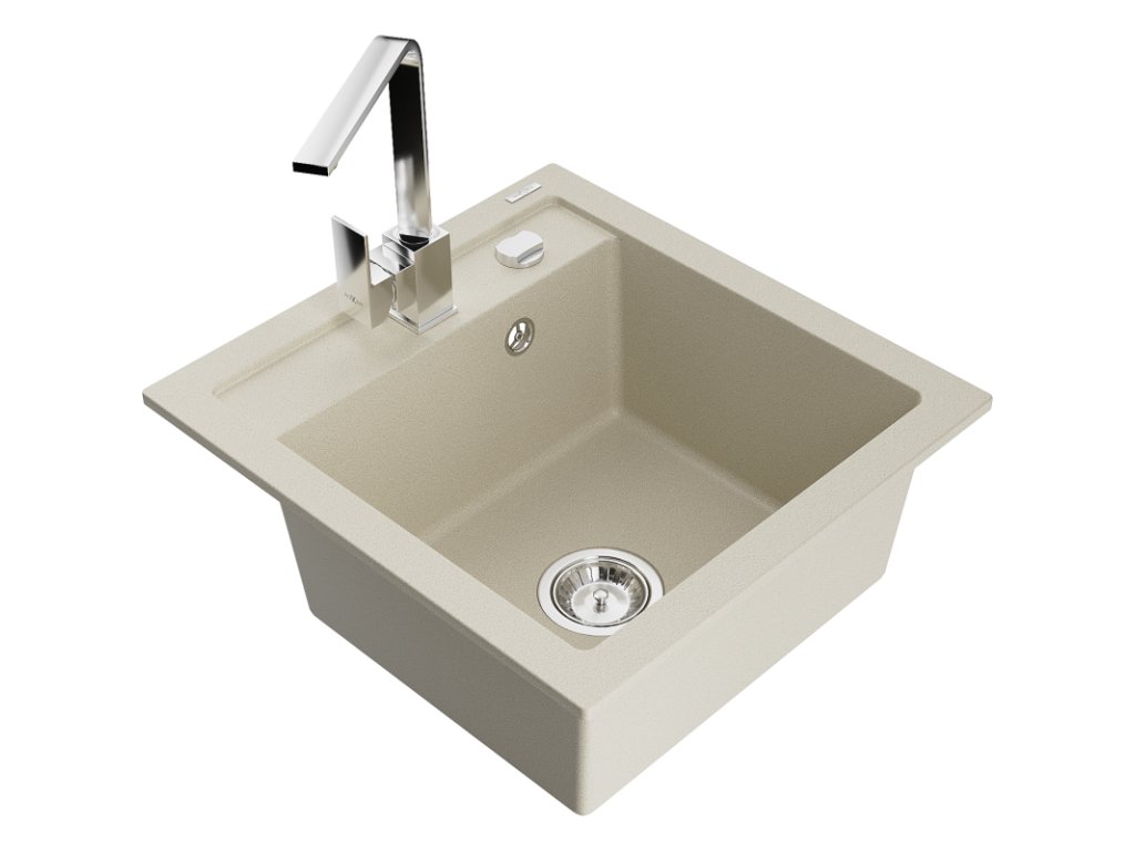 Granitový drez Mexen Vito s 1 misou a kuchynskou batériou Rita, béžová - 6503-69-670300-00