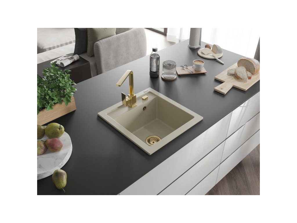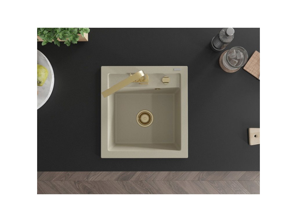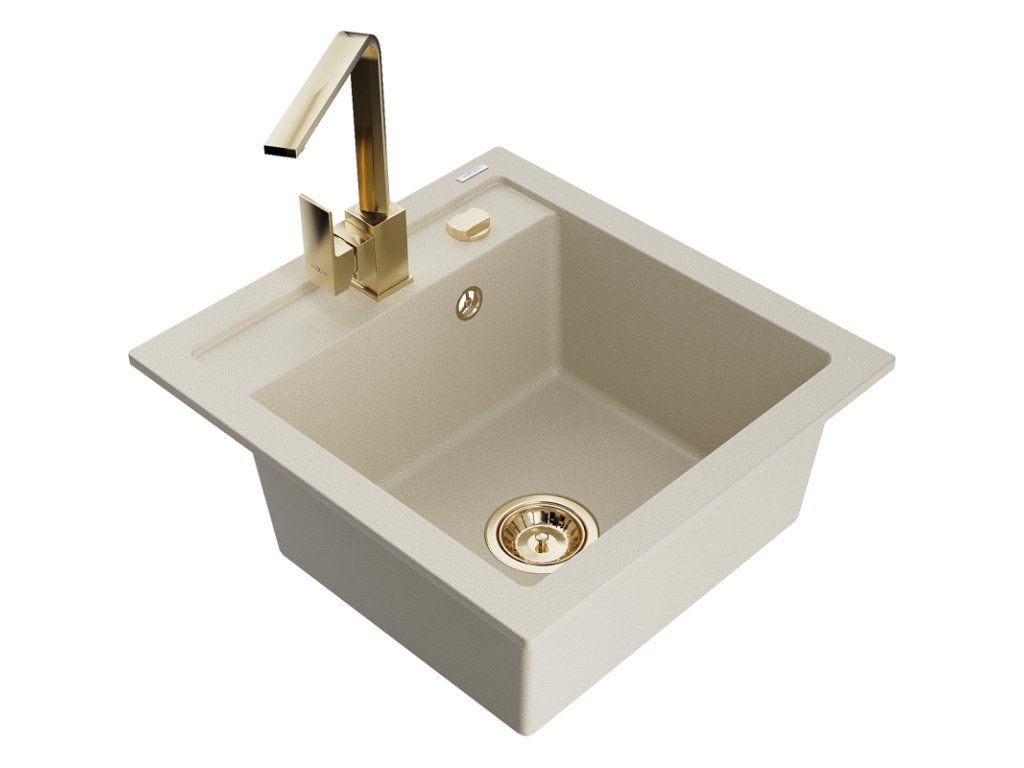 Granitový drez Mexen Vito s 1 misou a kuchynskou batériou Rita, béžový - 6503-69-670300-50