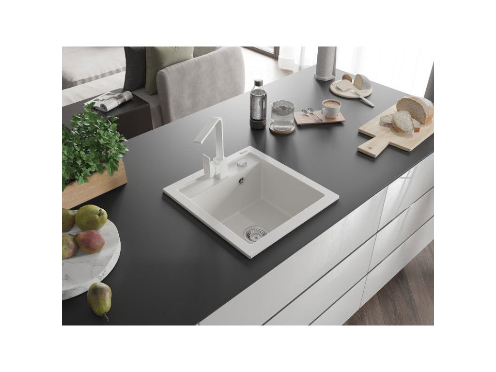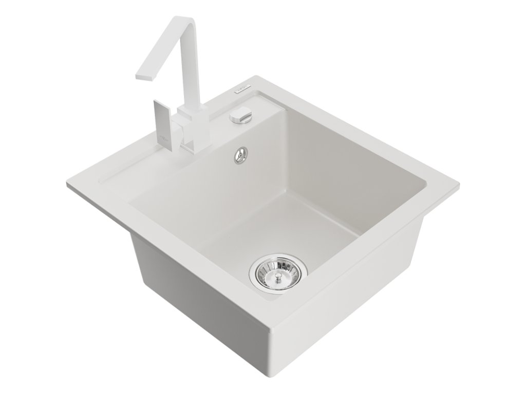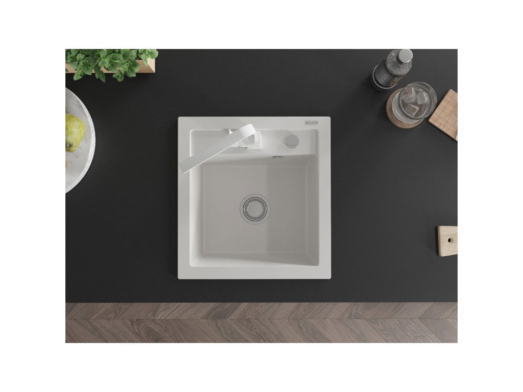 Granitový drez Mexen Vito s 1 misou a kuchynskou batériou Rita, biely - 6503-20-670300-20