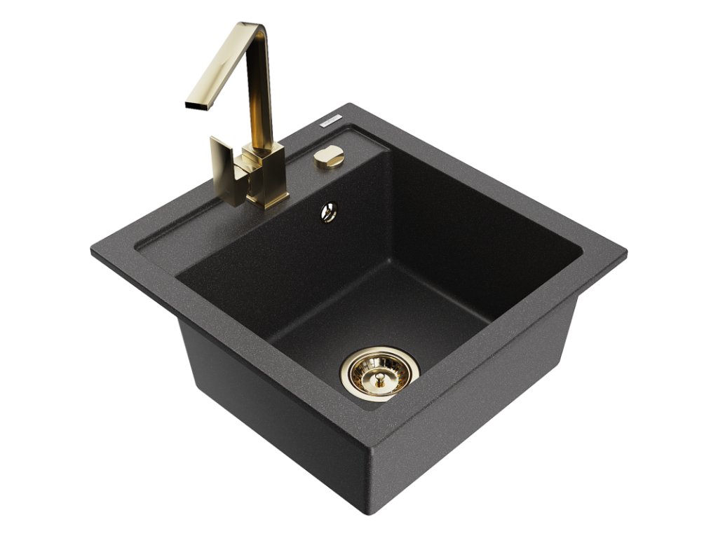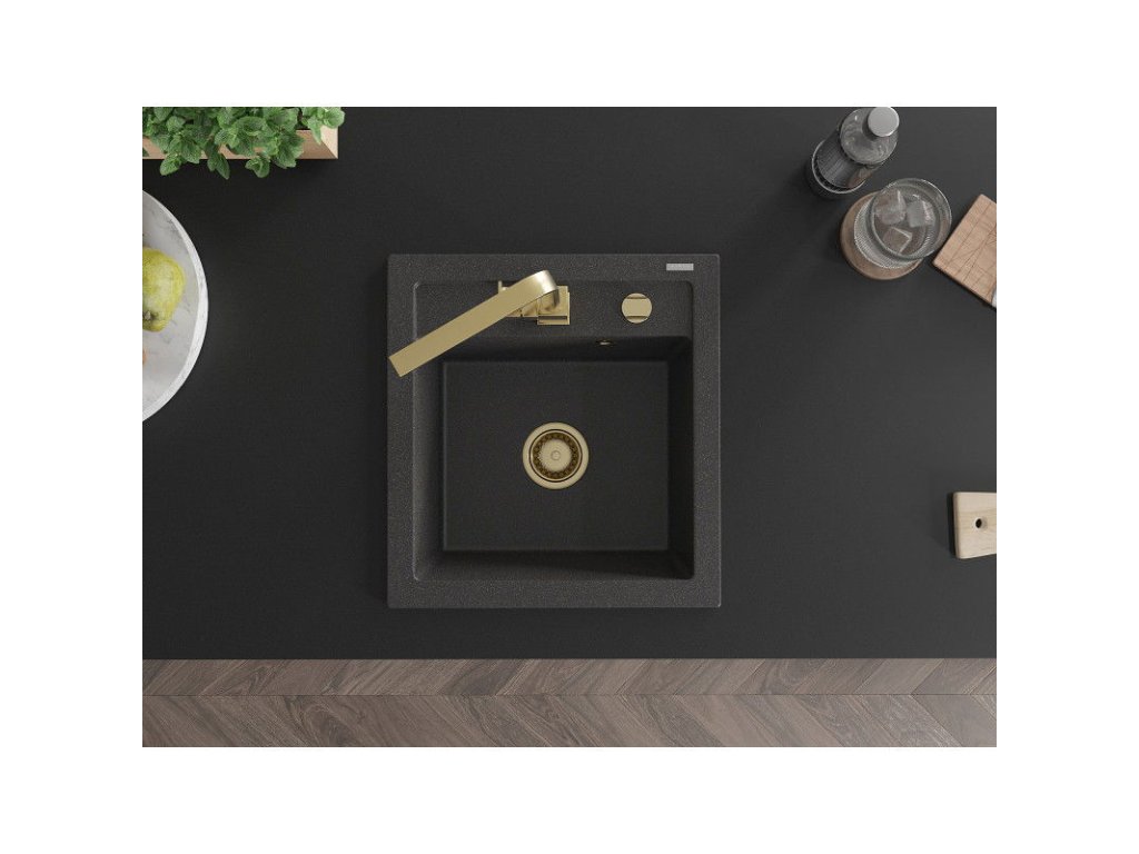 Granitový drez Mexen Vito s 1 misou a kuchynskou batériou Rita, čierna škvrna - 6503-76-670300-50