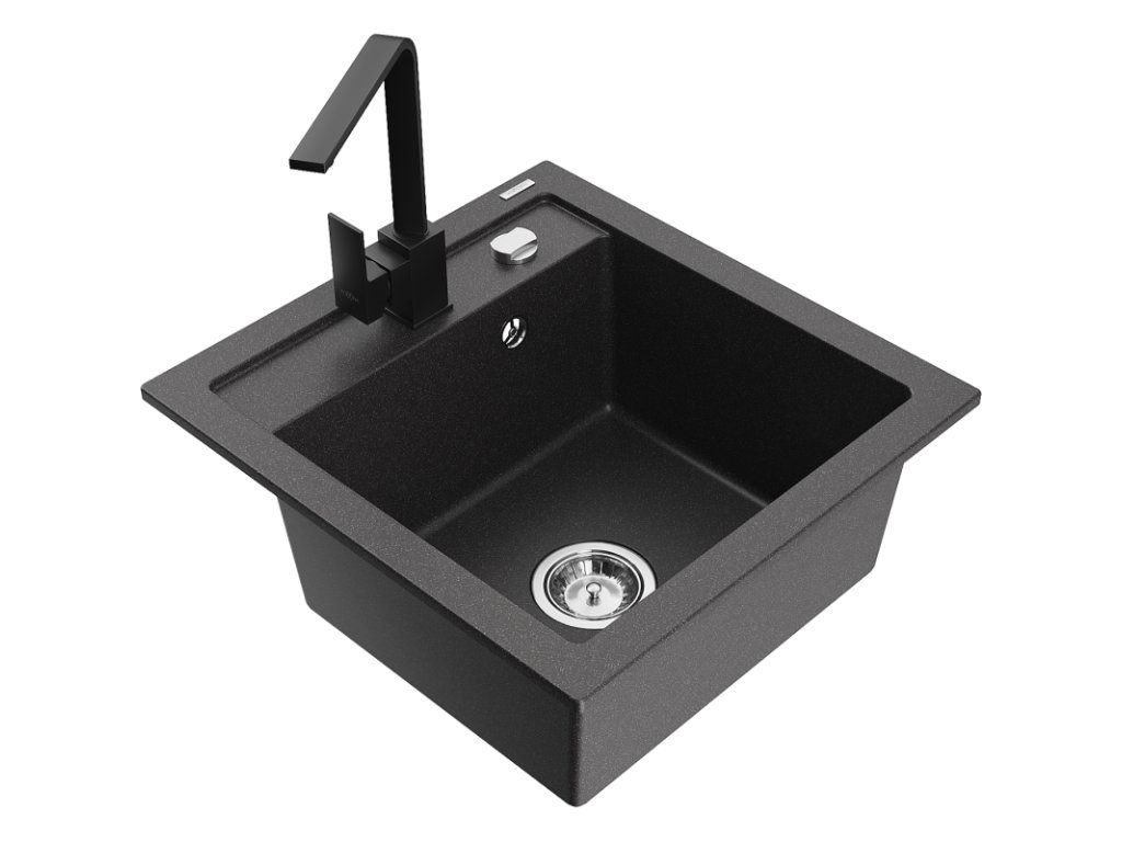 Granitový drez Mexen Vito s 1 misou a kuchynskou batériou Rita, čierna škvrna - 6503-76-670300-70