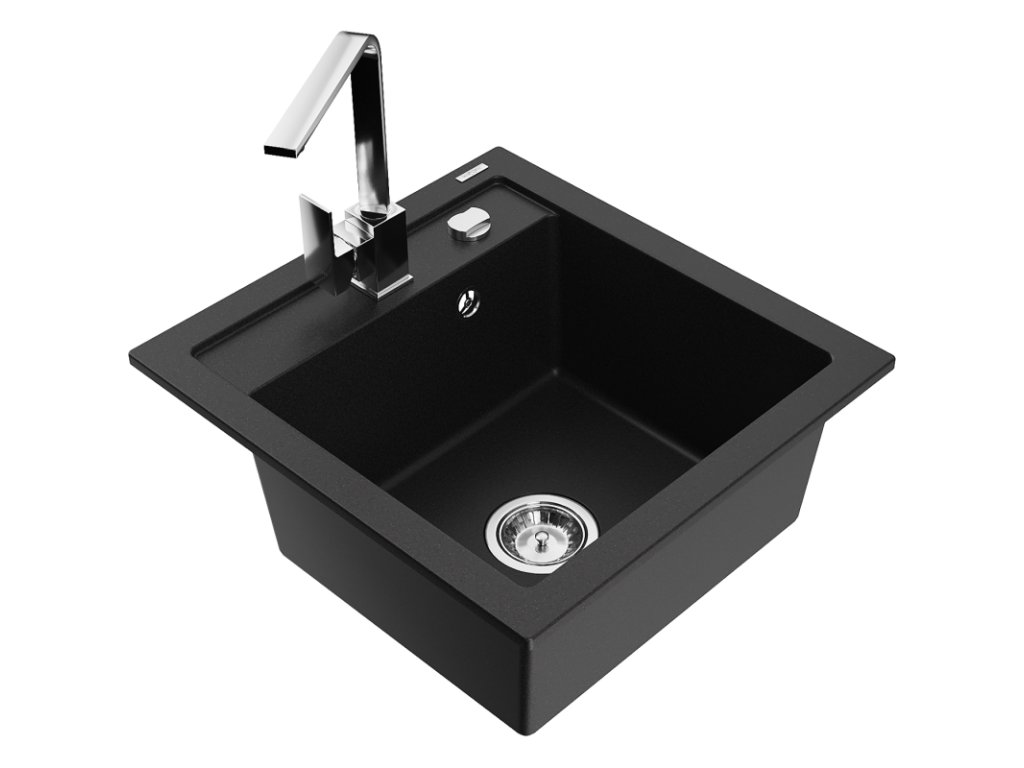 Granitový drez Mexen Vito s 1 misou a kuchynskou batériou Rita, čierny - 6503-77-670300-00