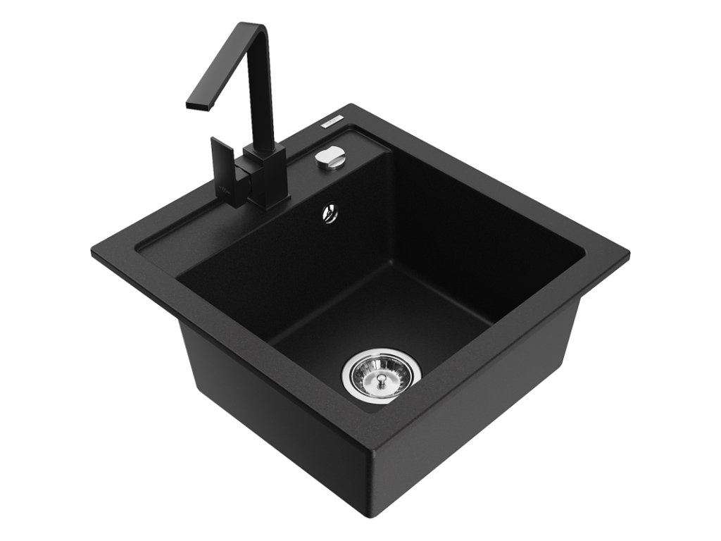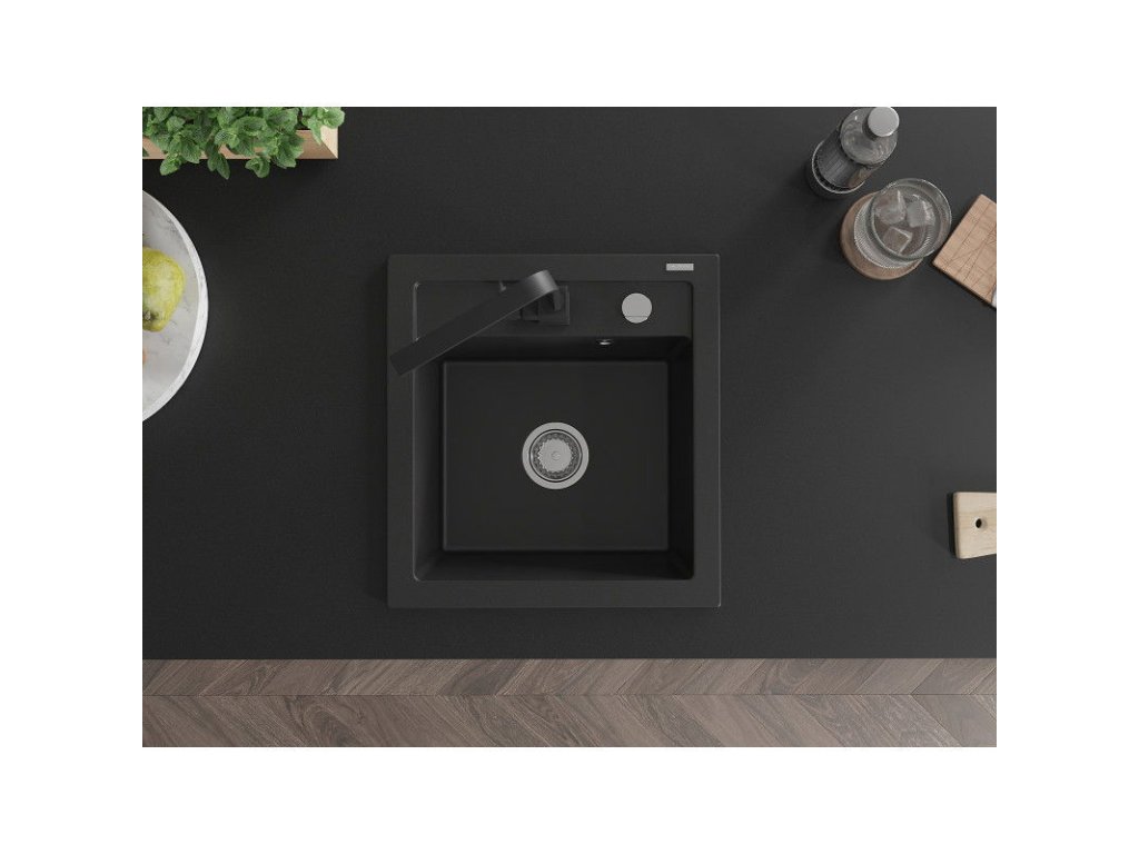 Granitový drez Mexen Vito s 1 misou a kuchynskou batériou Rita, čierny - 6503-77-670300-70