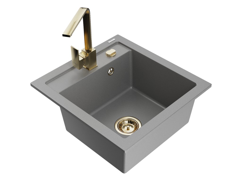 Granitový drez Mexen Vito s 1 misou a kuchynskou batériou Rita, sivý - 6503-71-670300-50