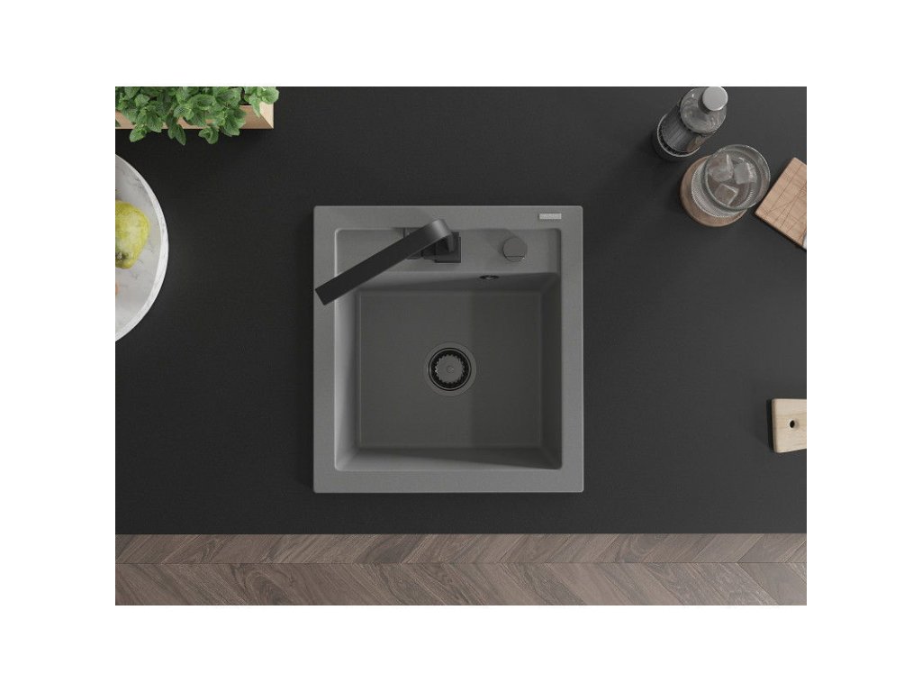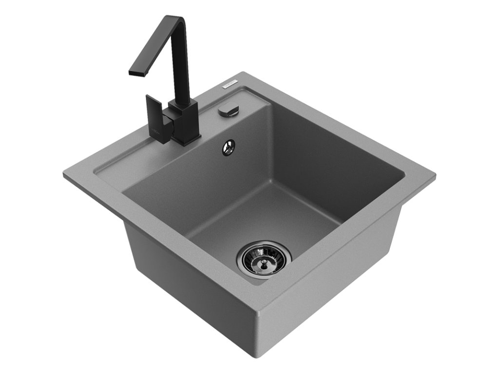 Granitový drez Mexen Vito s 1 misou a kuchynskou batériou Rita, sivý - 6503-71-670300-70-B