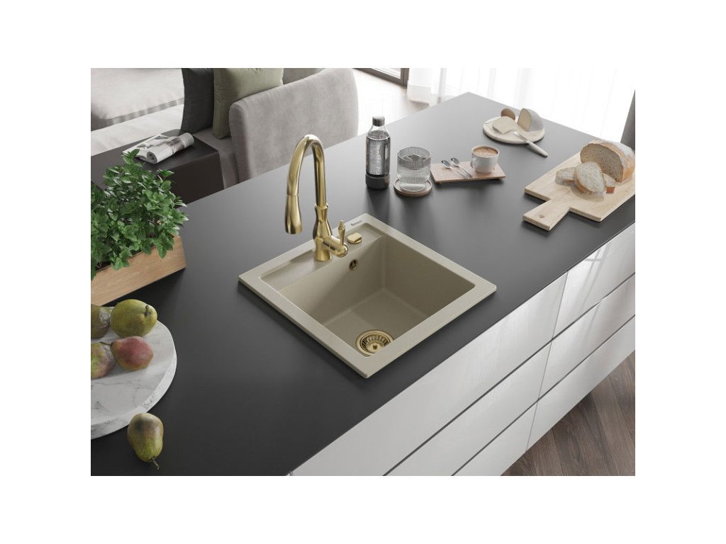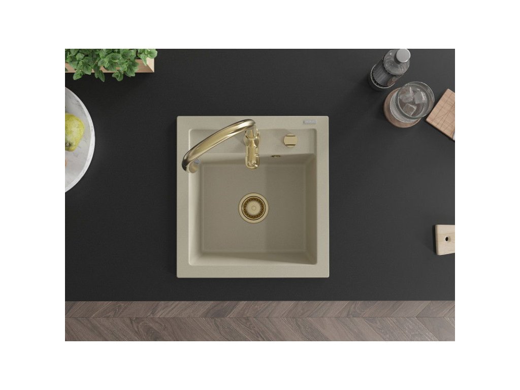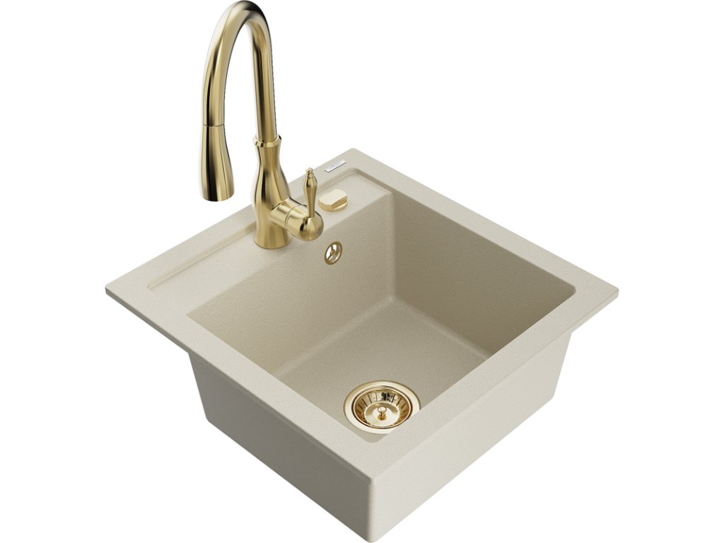 Granitový drez Mexen Vito s 1 misou a kuchynskou batériou Savita, béžový - 6503-69-672601-50