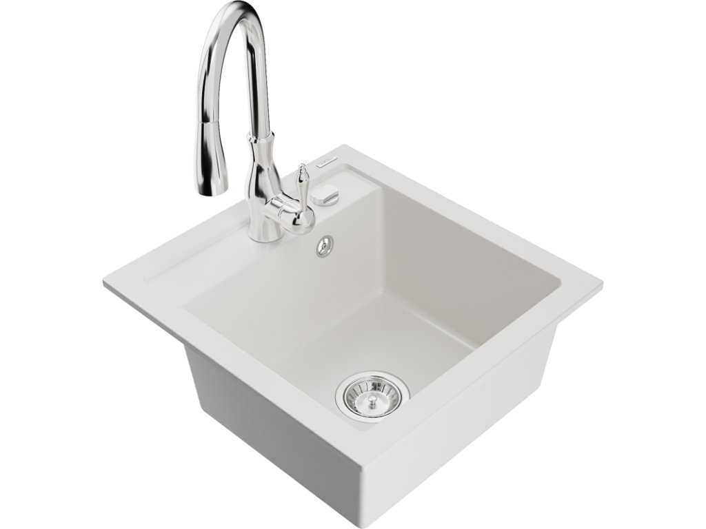 Granitový drez Mexen Vito s 1 misou a kuchynskou batériou Savita, biely - 6503-20-672601-00