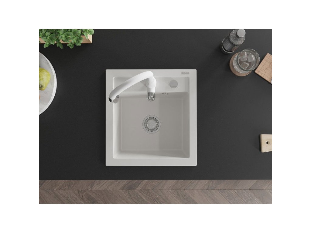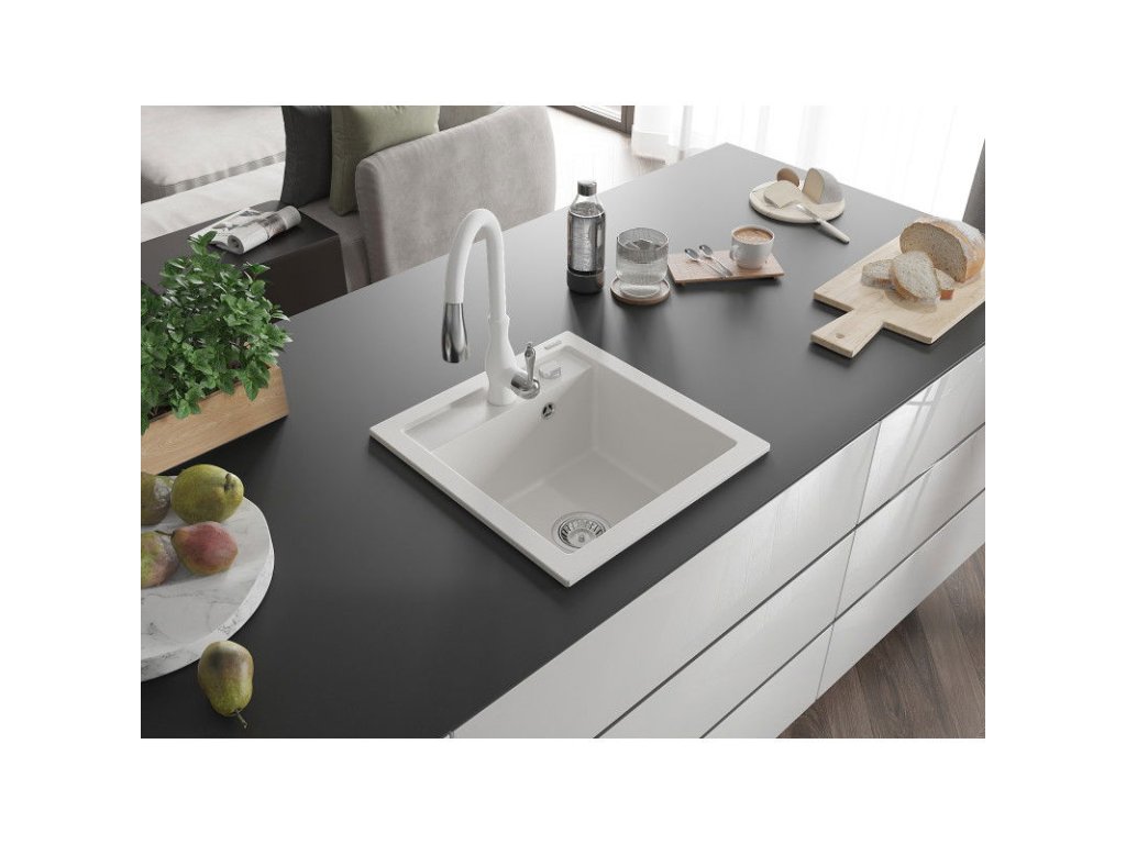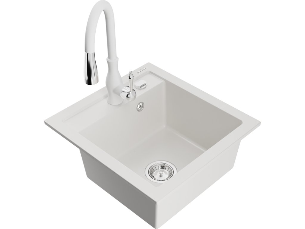 Granitový drez Mexen Vito s 1 misou a kuchynskou batériou Savita, biely - 6503-20-672601-20