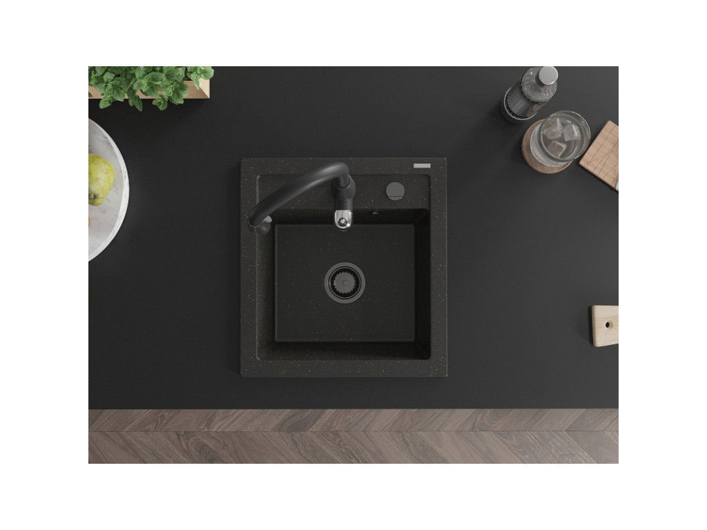 Granitový drez Mexen Vito s 1 misou a kuchynskou batériou Savita, čierna/zlatá metalíza - 6503-75-672601-70-B
