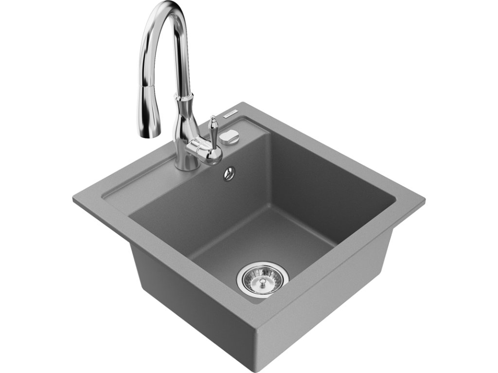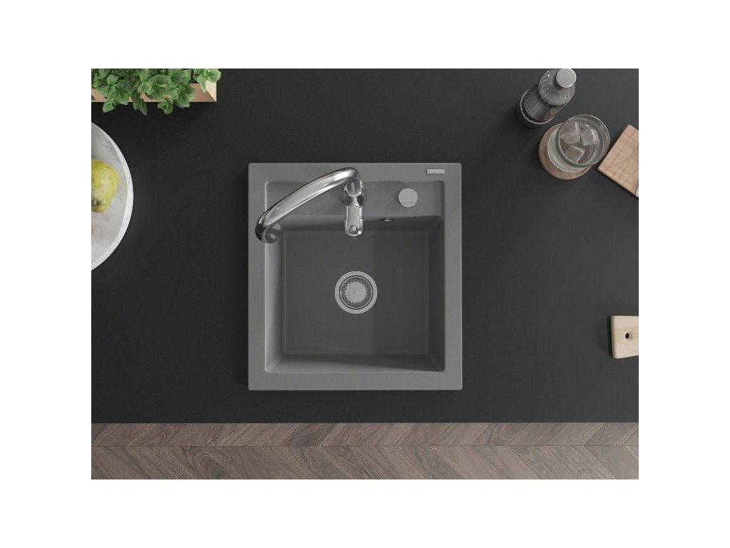 Granitový drez Mexen Vito s 1 misou a kuchynskou batériou Savita, sivý - 6503-71-672601-00