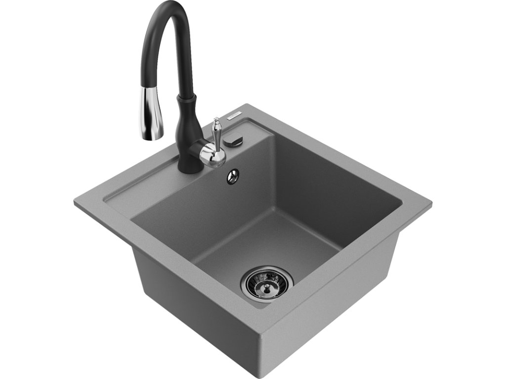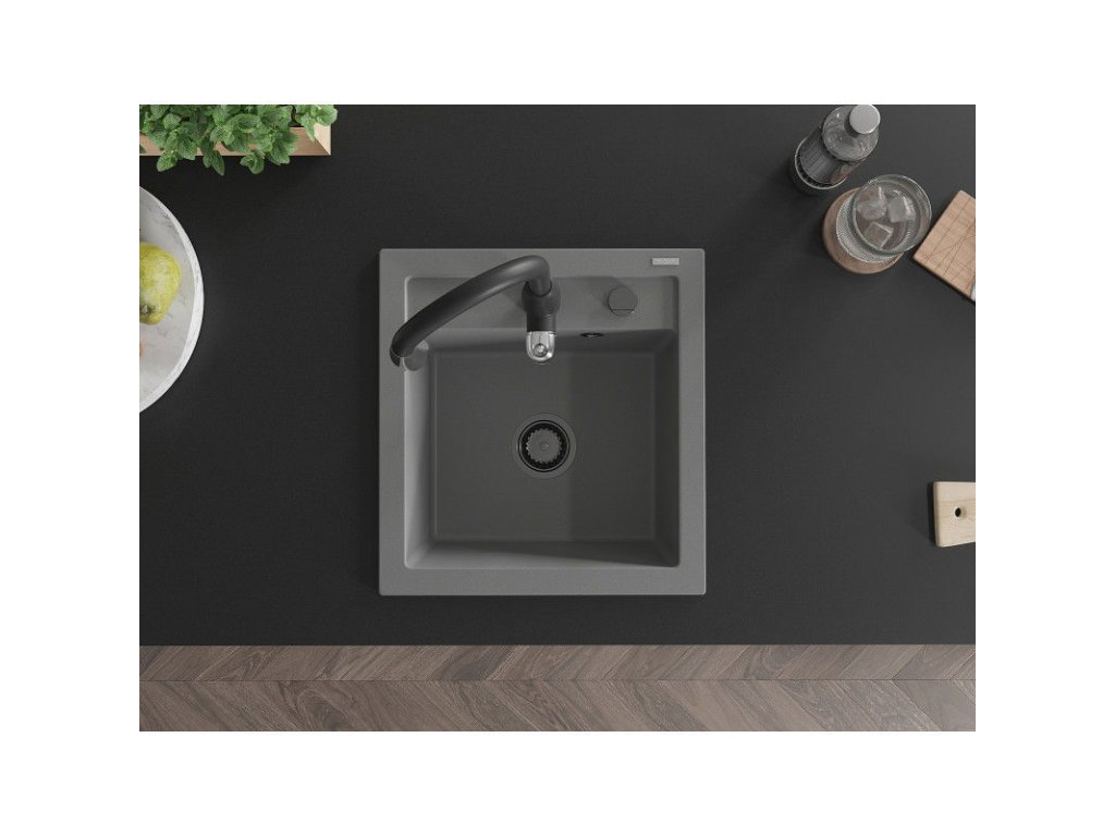 Granitový drez Mexen Vito s 1 misou a kuchynskou batériou Savita, sivý - 6503-71-672601-70-B