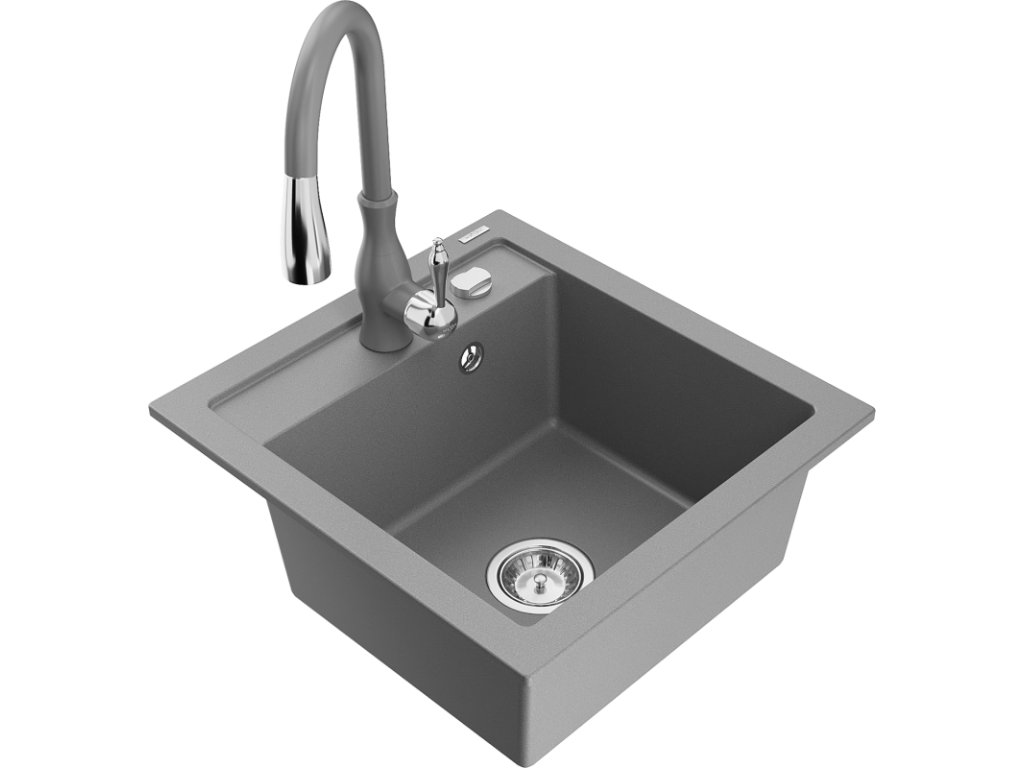 Granitový drez Mexen Vito s 1 misou a kuchynskou batériou Savita, sivý - 6503-71-672601-71