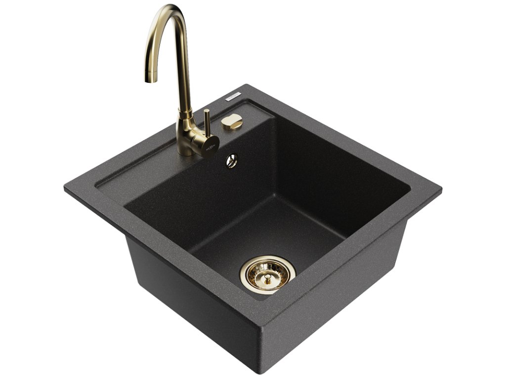 Granitový drez Mexen Vito s 1 misou a kuchynskou batériou Telma, čierna škvrna - 6503-76-670200-50
