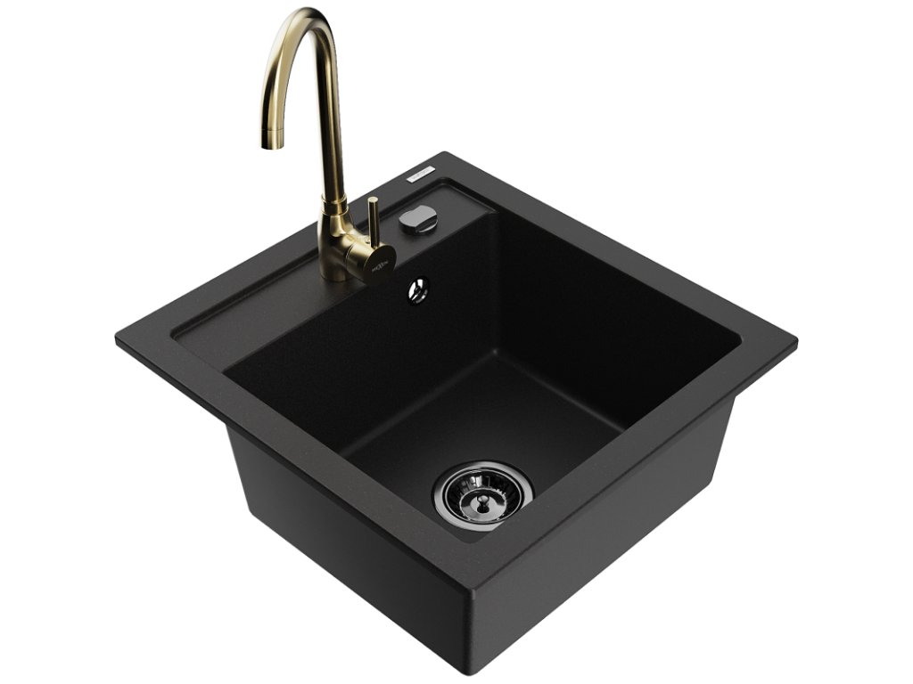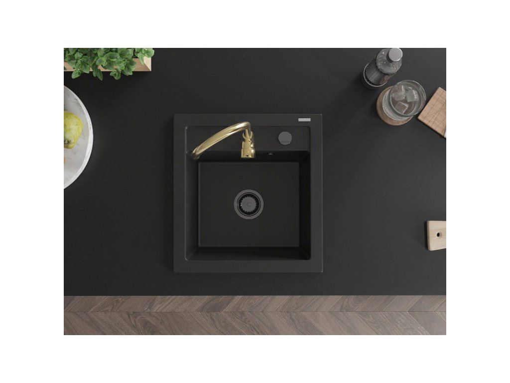 Granitový drez Mexen Vito s 1 misou a kuchynskou batériou Telma, čierny - 6503-77-670200-50-B