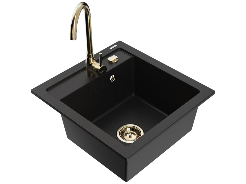 Granitový drez Mexen Vito s 1 misou a kuchynskou batériou Telma, čierny - 6503-77-670200-50