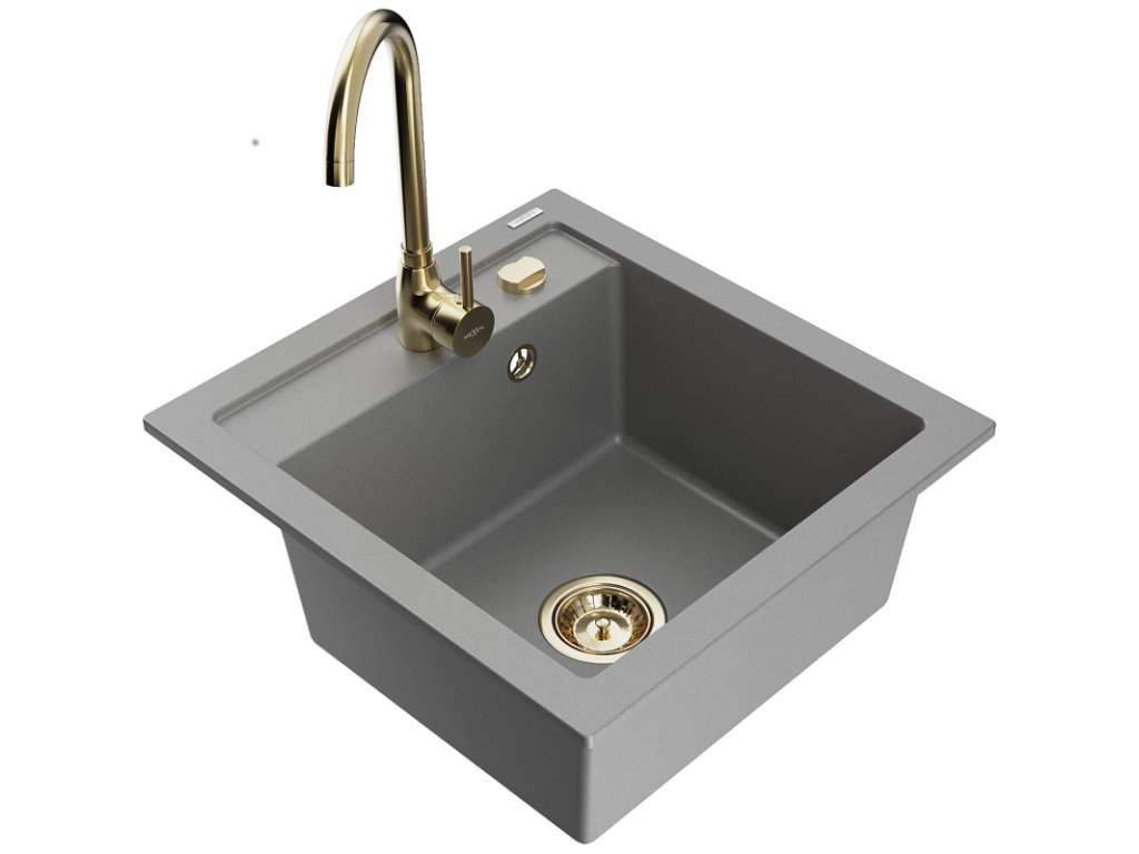 Granitový drez Mexen Vito s 1 misou a kuchynskou batériou Telma, sivý - 6503-71-670200-50