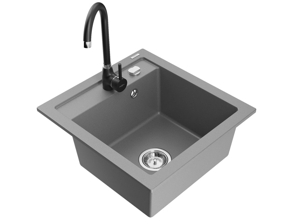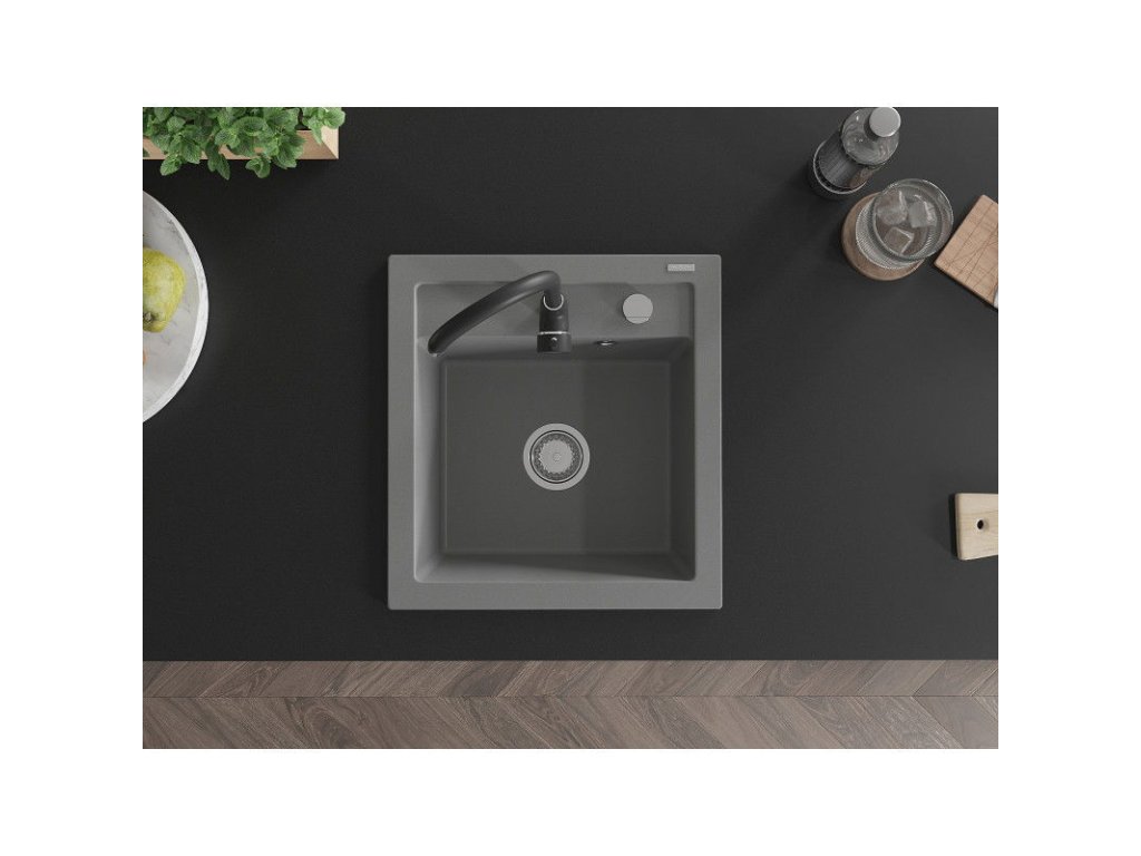 Granitový drez Mexen Vito s 1 misou a kuchynskou batériou Telma, sivý - 6503-71-670200-70