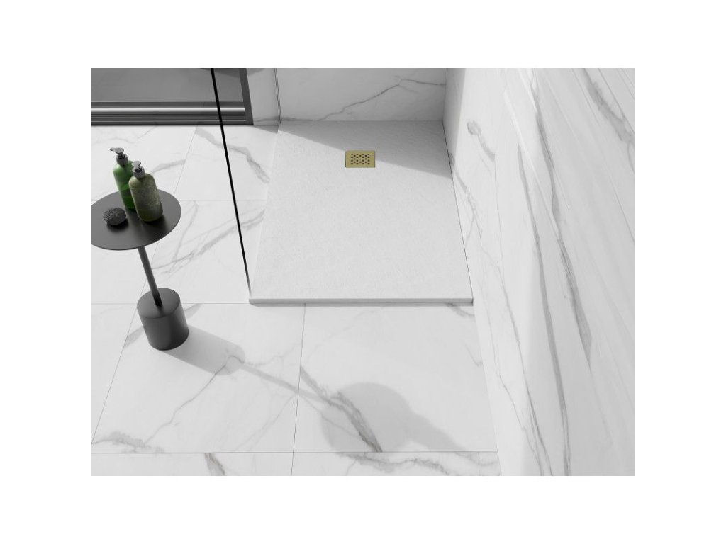 Kompozitná obdĺžniková sprchová vanička Mexen Stone+ 100 x 80 cm, biela, zlatá mriežka - 44108010-G
