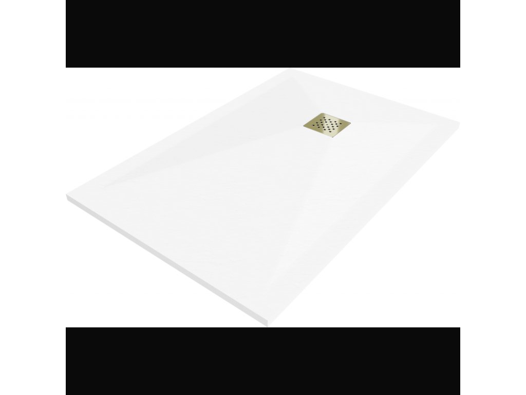 Kompozitná obdĺžniková sprchová vanička 110 x 80 cm v bielej farbe je ideálnym riešením pre moderné kúpeľne. Jej mimoriadne štíhly dizajn (výška 2,5 cm) umožňuje jednoduchú inštaláciu do podlahy aj na podlahu. Je vyrobená z odolného minerálneho kompozitu so štruktúrou kameňa, ktorý poskytuje maximálnu stabilitu a odolnosť proti nárazom. Súčasťou balenia je sifón s horným čistením a elegantný zlatý rámik dodáva luxusný nádych.Dodatočné parametre