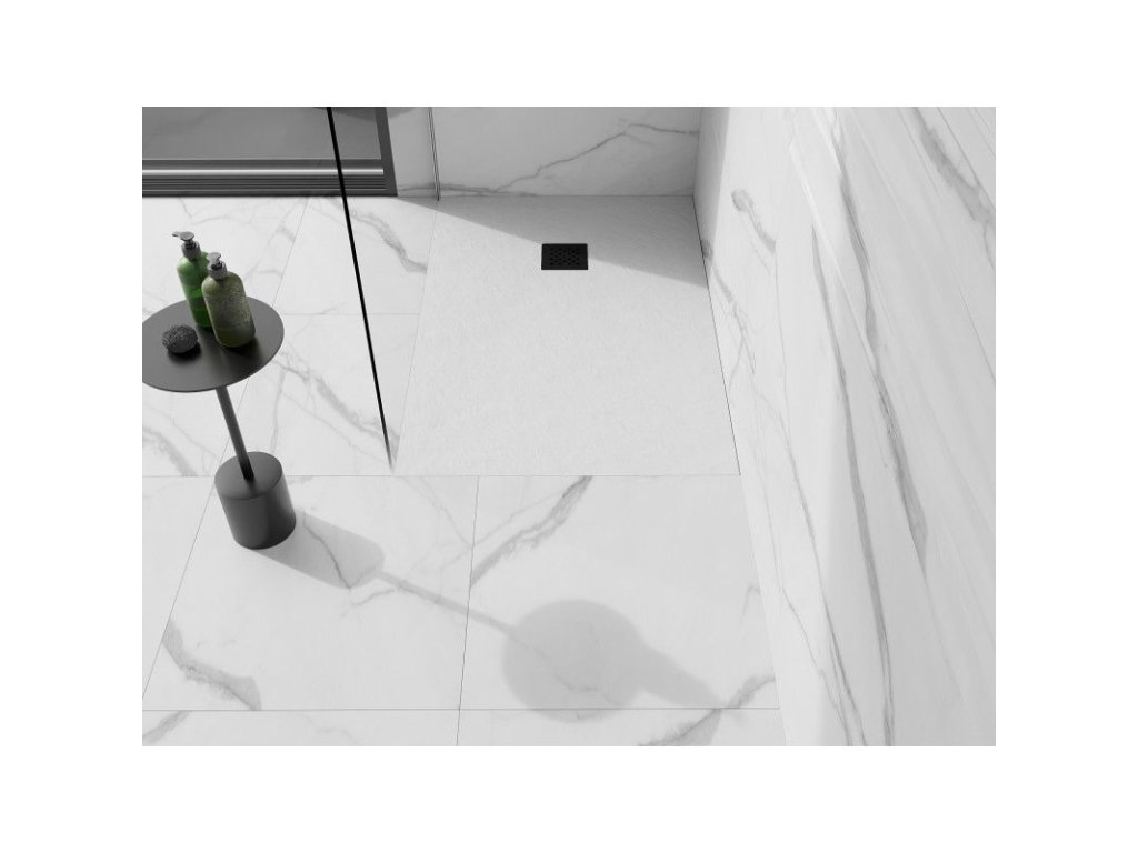 Kompozitná obdĺžniková sprchová vanička Mexen Stone+ 130 x 70 cm, biela, čierna mriežka - 44107013-B