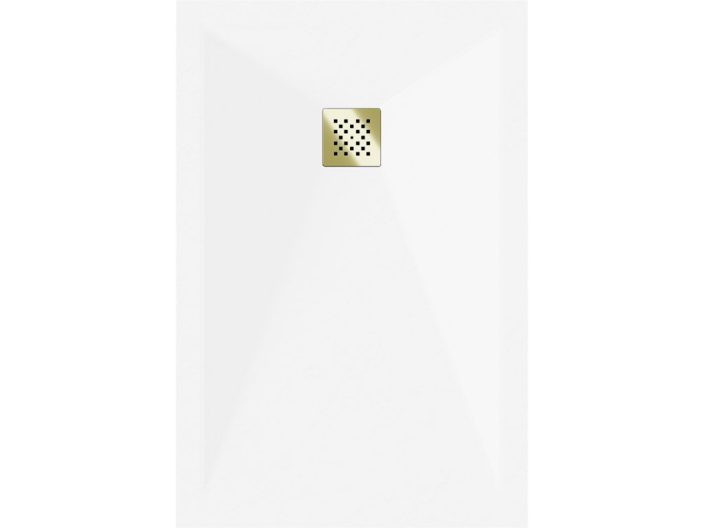 Kompozitná obdĺžniková sprchová vanička Mexen Stone+ 140 x 80 cm, biela, zlatá mriežka - 44108014-G