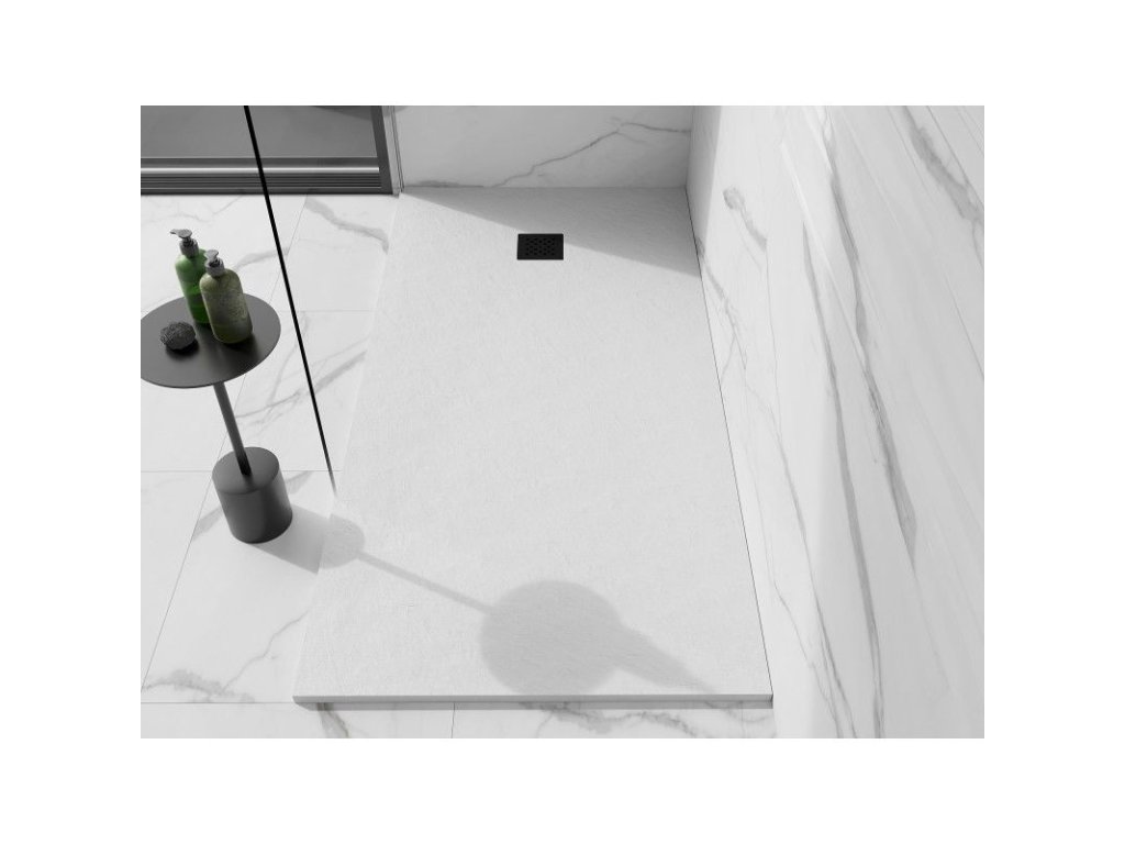 Kompozitná obdĺžniková sprchová vanička Mexen Stone+ 180 x 100 cm, biela, čierna mriežka - 44101018-B