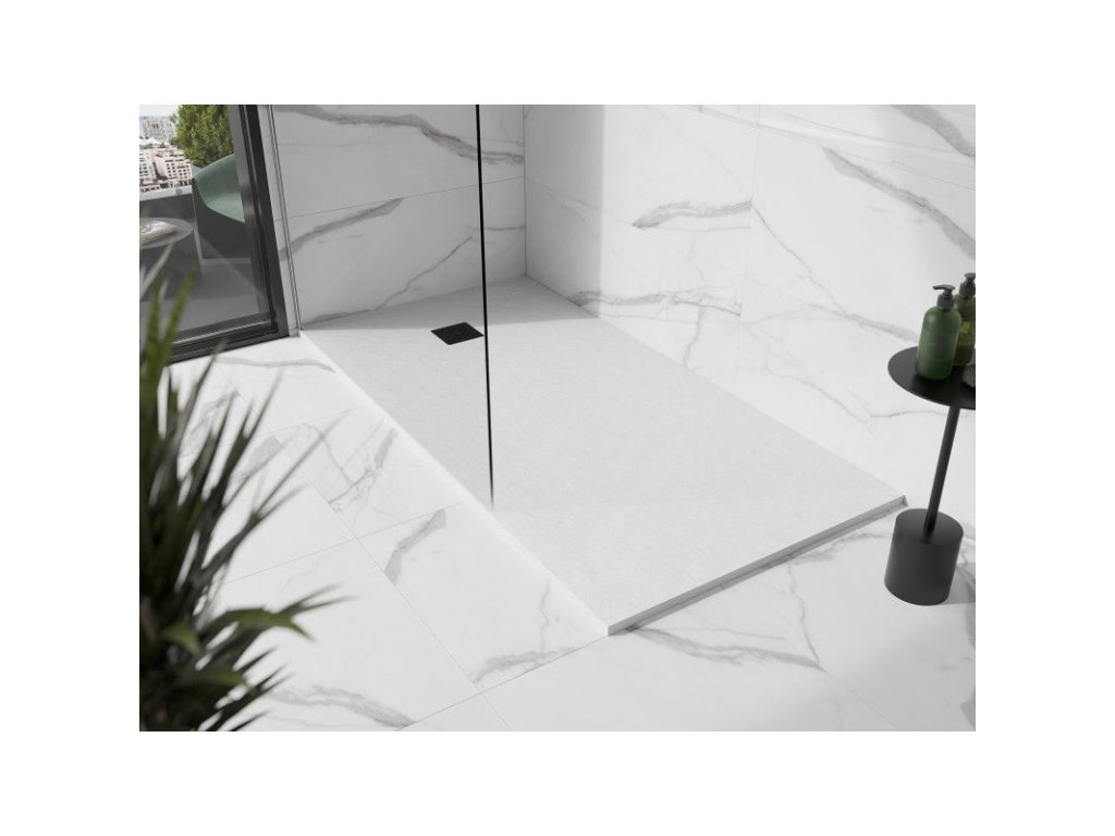 Mexen Stone+ je moderná kompozitná sprchová vanička s rozmermi 180 x 70 cm v elegantnej bielej farbe s čiernym rámom. Vďaka minerálnemu materiálu sa vyznačuje vysokou trvanlivosťou a odolnosťou proti nárazom, čo zaručuje maximálnu stabilitu a životnosť. Jej ultratenký dizajn (výška len 2,5 cm) dokonale zapadne do moderných kúpeľní. Inštalácia je možná do podlahy aj na podlahu a dodáva sa so sifónom s horným čistením a odtokom s priemerom 90 mm.Dodatočné parametre