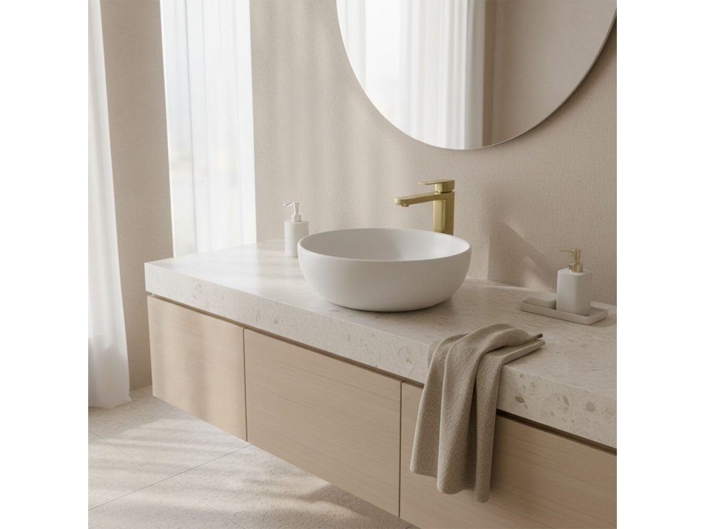 Vneste do svojej kúpeľne štipku luxusu vďaka vysokej umývadlovej batérii Rea Arlo vo vyhotovení brúsené zlato. Tento štíhly, vysoký model bol navrhnutý špeciálne pre moderné umyvadlá na dosku. Jeho súčasná geometrická forma s typickou plochou výtokovou hubicou skvele doplní elegantné interiéry a spája funkčnosť s vycibreným dizajnom.Vysoká konštrukcia – zvýšené telo batérie zabezpečuje pohodlie pri používaní a ideálne sa hodí k hlbokým miskám umývadiel na dosku.Farba brúsené zlato – ušľachtilá matná povrchová úprava, ktorá dodá priestoru prestíž, zároveň sa ľahko čistí a je odolná voči nečistotám.Moderný dizajn – čisté línie, sploštená hubica a ergonomická páka tvoria kompaktný minimalistický celok.Perlátor – integrovaná koncovka výtoku prevzdušňuje prúd vody, pomáha šetriť vodu a zabezpečuje mäkký, komfortný prúd.Jednopákový zmiešavač – presná páka umožňuje rýchle a jednoduché nastavenie teploty aj intenzity prúdu jednou rukou.Vysoká umývadlová batéria Rea Arlo v zlatej farbe je voľbou pre tých, ktorí hľadajú výrazné a funkčné doplnky. Jej vysoká silueta krásne vynikne pri umývadle a brúsený zlatý odtieň dodá umývadlovej zóne výnimočný lesk. Ideálna voľba na zvýraznenie moderného štýlu vašej kúpeľne.Dodatočné parametre