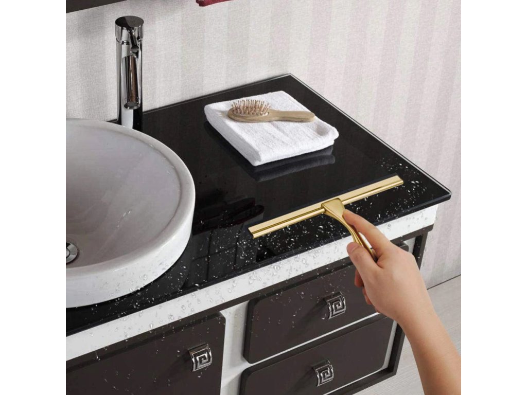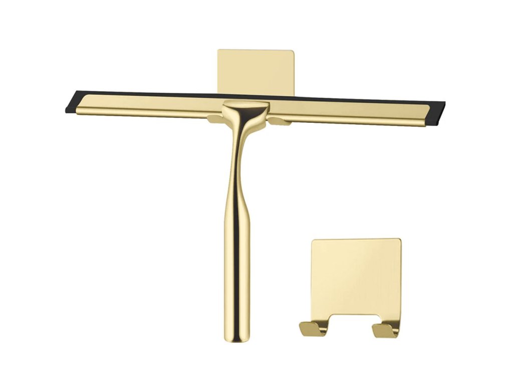 Moderná a elegantná kúpeľná stierka so závesným systémom je skvelým riešením na udržiavanie čistoty vo Vašej kúpeľni ľahko a rýchlo. Vďaka tejto stierke môžete odstrániť prebytočnú vodu z povrchov bez vzniku nežiaducich smúh.\nSúprava obsahuje závesný systém (hák), ktorý je určený na montáž na stenu a to bez vŕtania.\n\nRukoväť stierky je vyrobená z vysoko kvalitného kovu odolnému proti poškriabaniu, strate farby a korózii. Iba niekoľkými pohybmi zostanú Vaše obklady, sprchovací kút alebo zrkadlo čisté a suché bez škvŕn.Dodatočné parametre