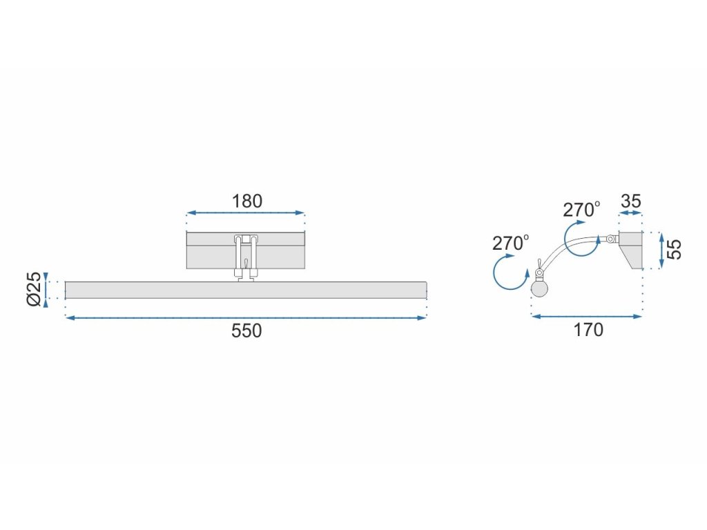 Nadčasové a elegantné LED nástenné svietidlo ideálne ako osvetlenie kúpeľne nad zrkadlom, ako aj výkladov alebo kaderníckych salónov. Bude to vyzerať skvele ako osvetlenie obrazu. Svietidlo má nastaviteľné rameno nástenného svietidla s možnosťou nastavenia uhla sklonu v dvoch bodoch. Moderný dizajn a výkon lampy určite zapôsobí na každého.Dodatočné parametre