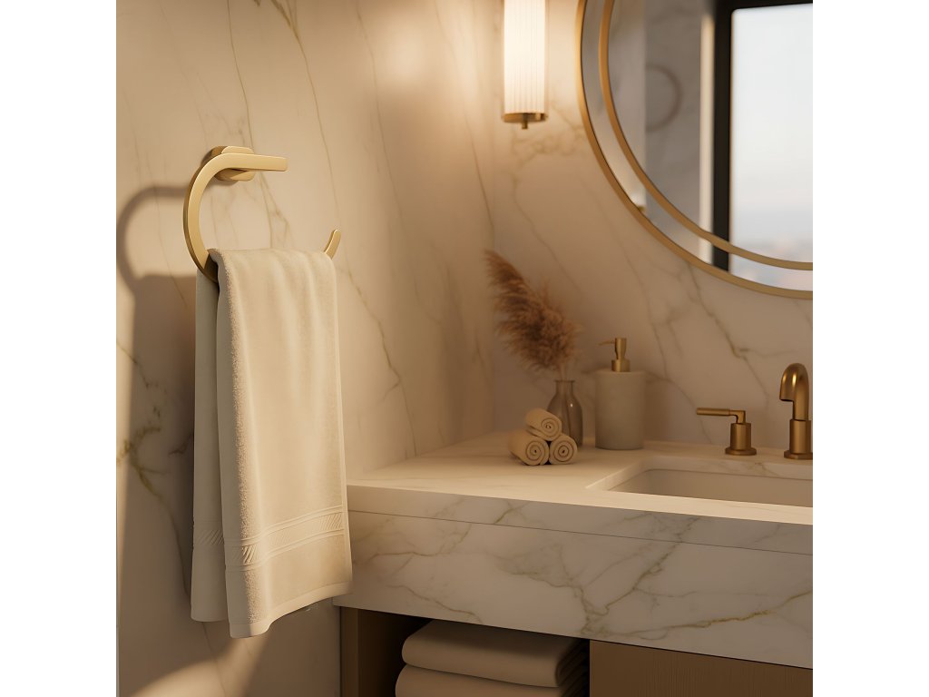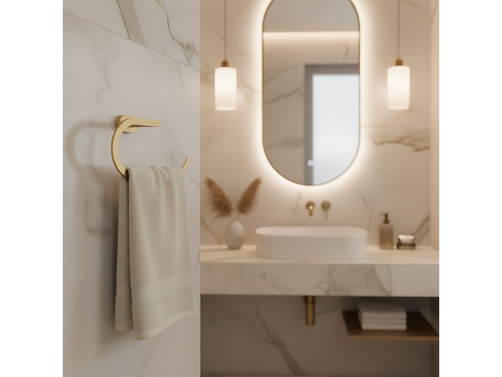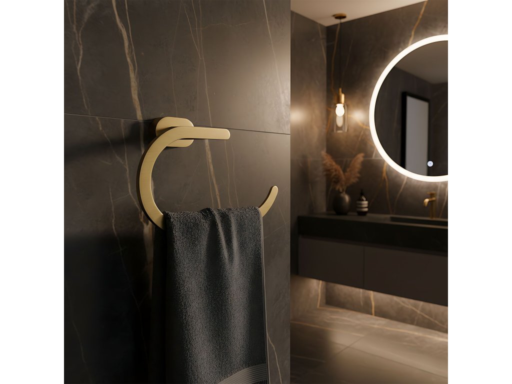 Vneste do svojej kúpeľne nádych luxusu s naším držiakom na uterák Rea Til v prevedení kartáčované zlato. Ideálna kombinácia prepracovaného dizajnu a každodennej funkčnosti, ktorá nádherne zvýrazní priestor umývadla. Náš kruhový držiak nielen doplní glamour štýl, ale zaručí aj spoľahlivosť a dlhú životnosť.Povrchová úprava kartáčované zlato – dodáva luxusnú eleganciu a predstavuje rafinovaný detail interiéru.Praktický tvar kruhu – poskytuje jednoduchý prístup k uteráku a pohodlné zavesenie priamo pri umývadle.Jemne kartáčovaný povrch – veľmi ľahko sa čistí a zachováva dokonalý lesk.Skrytá montáž – estetické upevnenie na stenu bez viditeľných skrutiek podčiarkuje elegantný efekt.Držiak na uterák Rea Til je voľbou pre tých, ktorí oceňujú pohodlie a sofistikovaný dizajn. Dokonale spracovaný bude praktickou ozdobou vašej kúpeľne. Vďaka pevnej konštrukcii a jednoduchej montáži vám bude spoľahlivo slúžiť dlhé roky, pričom zaručí každodenný komfort.Dodatočné parametre
