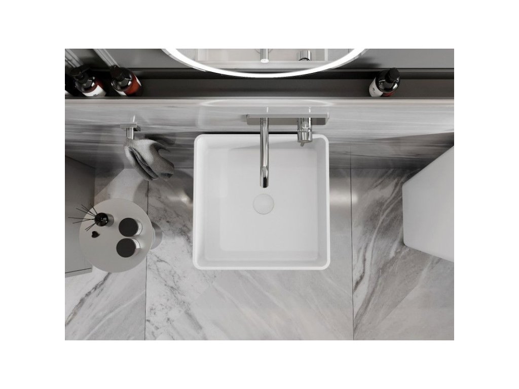 Mexen Adora voľne stojace konglomerátové umývadlo 45 x 45 cm, biele matné - 26564500