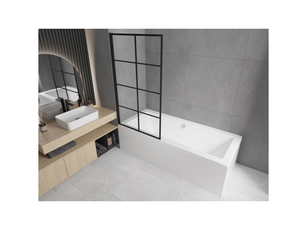 Mexen Alex vaňová zástena, 1-krídlo 80 x 140 cm, čierny vzor fix- 893-080-000-70-77