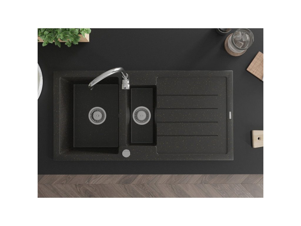 Mexen Andres drez granitový 1,5-komorový s odkvapkávačom 1000 x 500 mm, čierny/zlatá metalíza - 6515101510-75