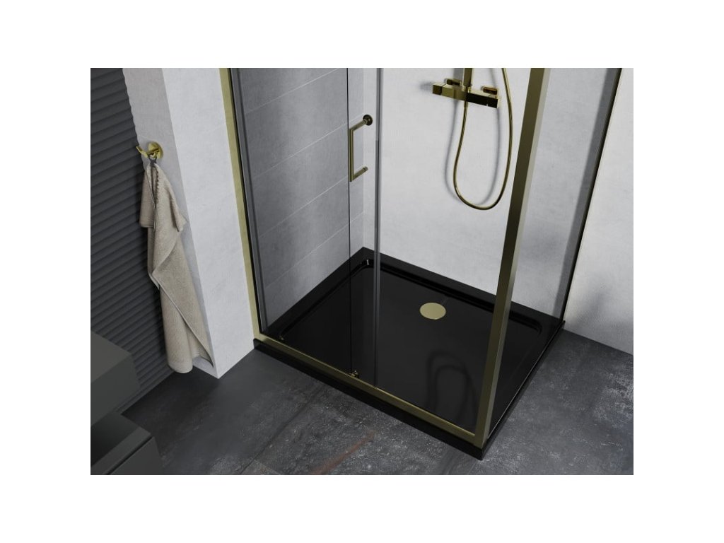 Mexen Apia posuvný sprchový kút 100 x 70 cm, transparentný, zlatý + Plochá sprchová vanička, čierna - 840-100-070-50-00-4070G