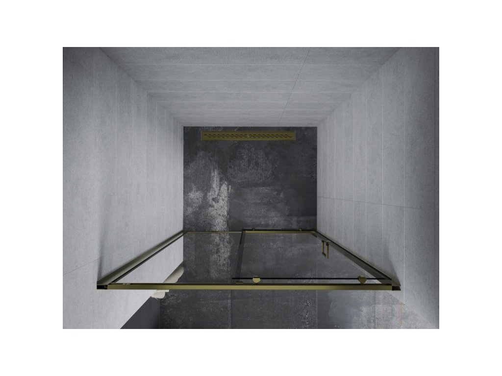 \nTechnické údaje: rozmery: 105x190 cm montáž: univerzálna Ľ+P vstup: posuvné dvere farba skla: priehľadné sklo - transparent typ skla: tvrdené - bezpečnostné hrúbka skla: 5 mm profil: hliník povrchová úprava: zlatá lesklá povlak pre ľahké čistenie: áno vyrovnanie nerovností steny: áno nastavenie šírky: áno montáž na dlažbu alebo sprchovú vaničku: áno kovová rukoväť sada tesnení na odvod vody hliníkový prah dveríDodatočné parametre