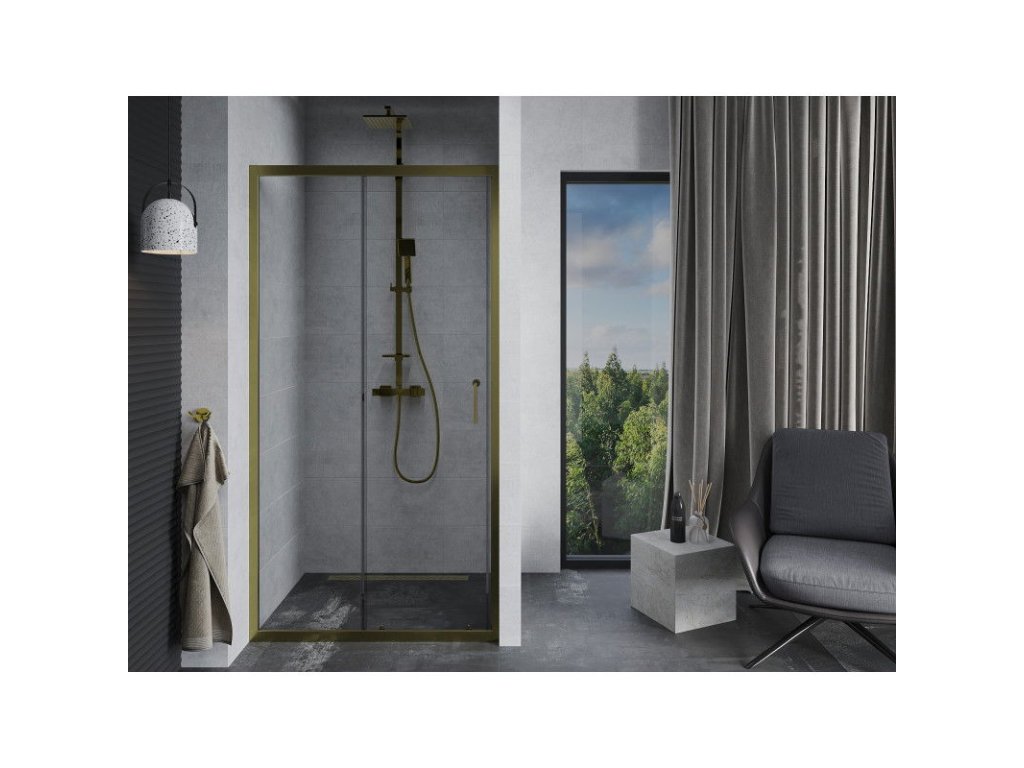 Mexen Apia sprchové dvere posuvné 125 cm, priehľadné sklo, zlaté - 845-125-000-50-00