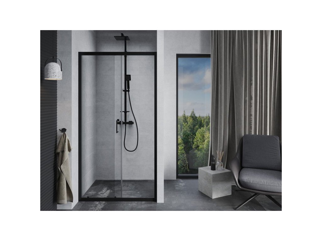 Mexen Apia sprchové dvere posuvné 140 cm, priehľadné sklo, čierne - 845-140-000-70-00
