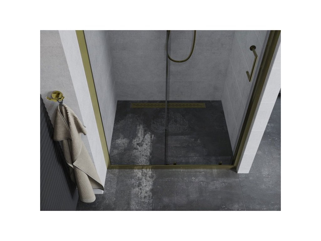Mexen Apia sprchové dvere posuvné 140 cm, priehľadné sklo, zlaté - 845-140-000-50-00
