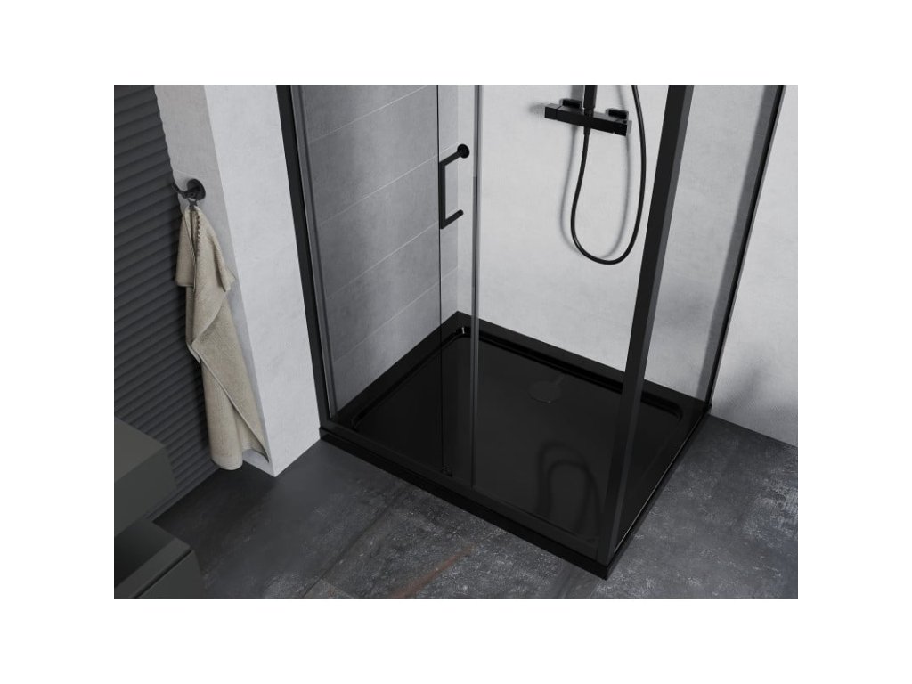 Mexen Apia sprchový kút posuvné dvere 100 x 70 cm, priehľadné sklo, profil čierny + sprchová vanička Flat, čierna - 840-100-070-70-00-4070B