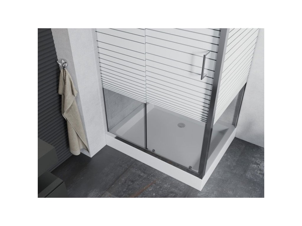 Mexen Apia sprchový kút posuvné dvere 100 x 80 cm, pásy, profil chróm + sprchová vanička Rio - 840-100-080-01-20-4510