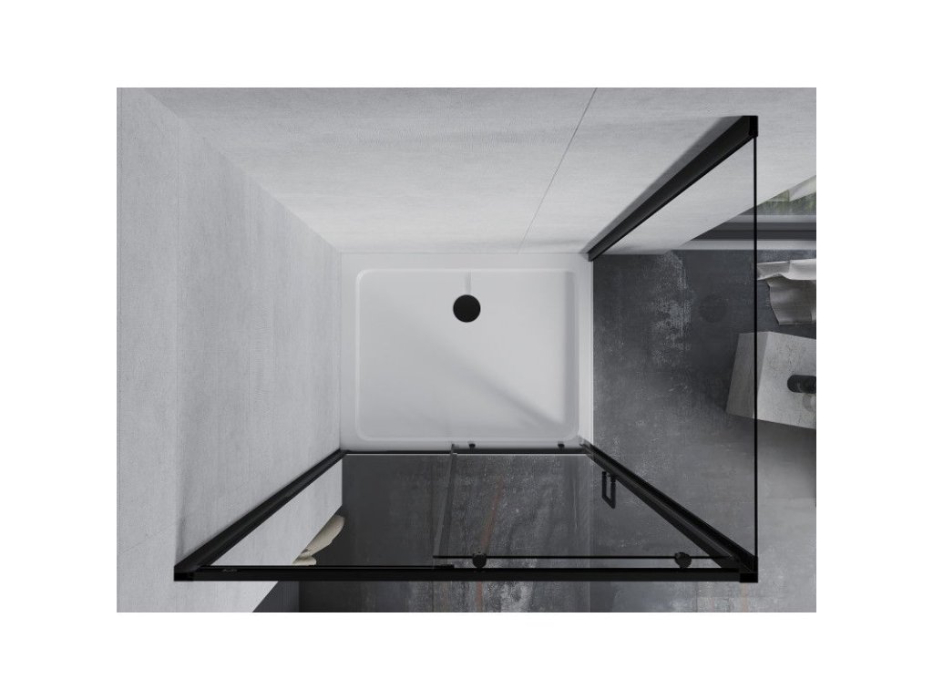Mexen Apia sprchový kút posuvné dvere 100 x 80 cm, priehľadné sklo, profil čierny + sprchová vanička Flat, biela- 840-100-080-70-00-4010B