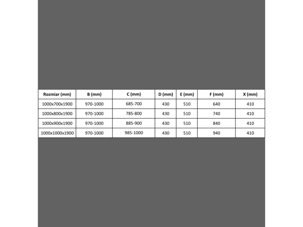 rozmery: 100x90 cm (dvere 100 cm. fixná stena 90 cm)