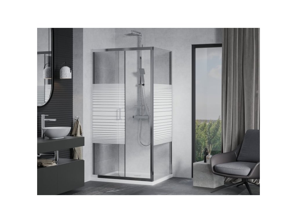Mexen Apia sprchový kút posuvné dvere 100 x 90 cm, pásy, profil chróm + sprchová vanička Flat - 840-100-090-01-20-4010