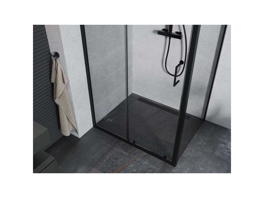 Mexen Apia sprchový kút posuvné dvere 100 x 90 cm, priehľadné sklo, profil čierny - 840-100-090-70-00