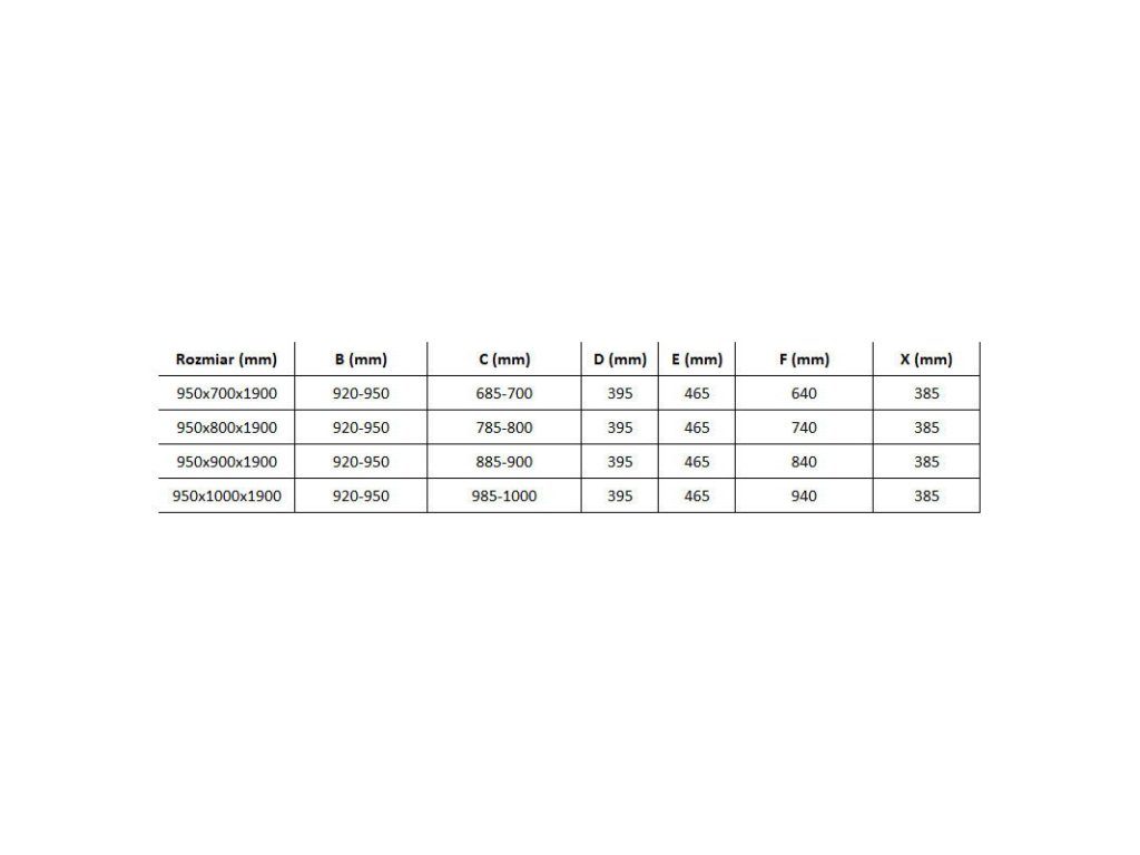 rozmery: 100x90 cm (dvere 100 cm. fixná stena 90 cm)